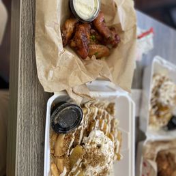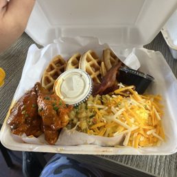 It is the best food combination I've had. Idk why there were flavored wings next to my waffles with whip cream but there was and I have no complaints. The owner and staff were easygoing especially after we almost ordered the whole menu. The place looks alright for the location being the train station. But who cares about looks when the food is of quality. The owner/chef liked our vibes and saw we really enjoyed the food that he took a picture of us for instagram.